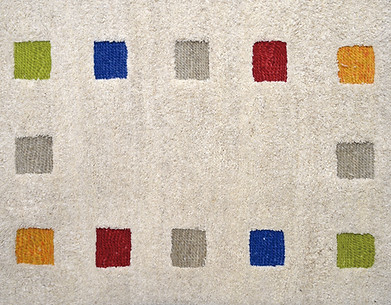Tapetes anudados a mano con lana virgen, lana tinturada e hilaza.