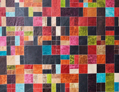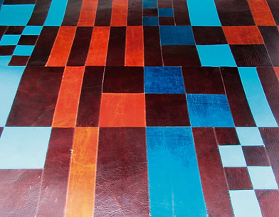 Tapetes elaborados con cuero liso, hilo encerado y fieltro.